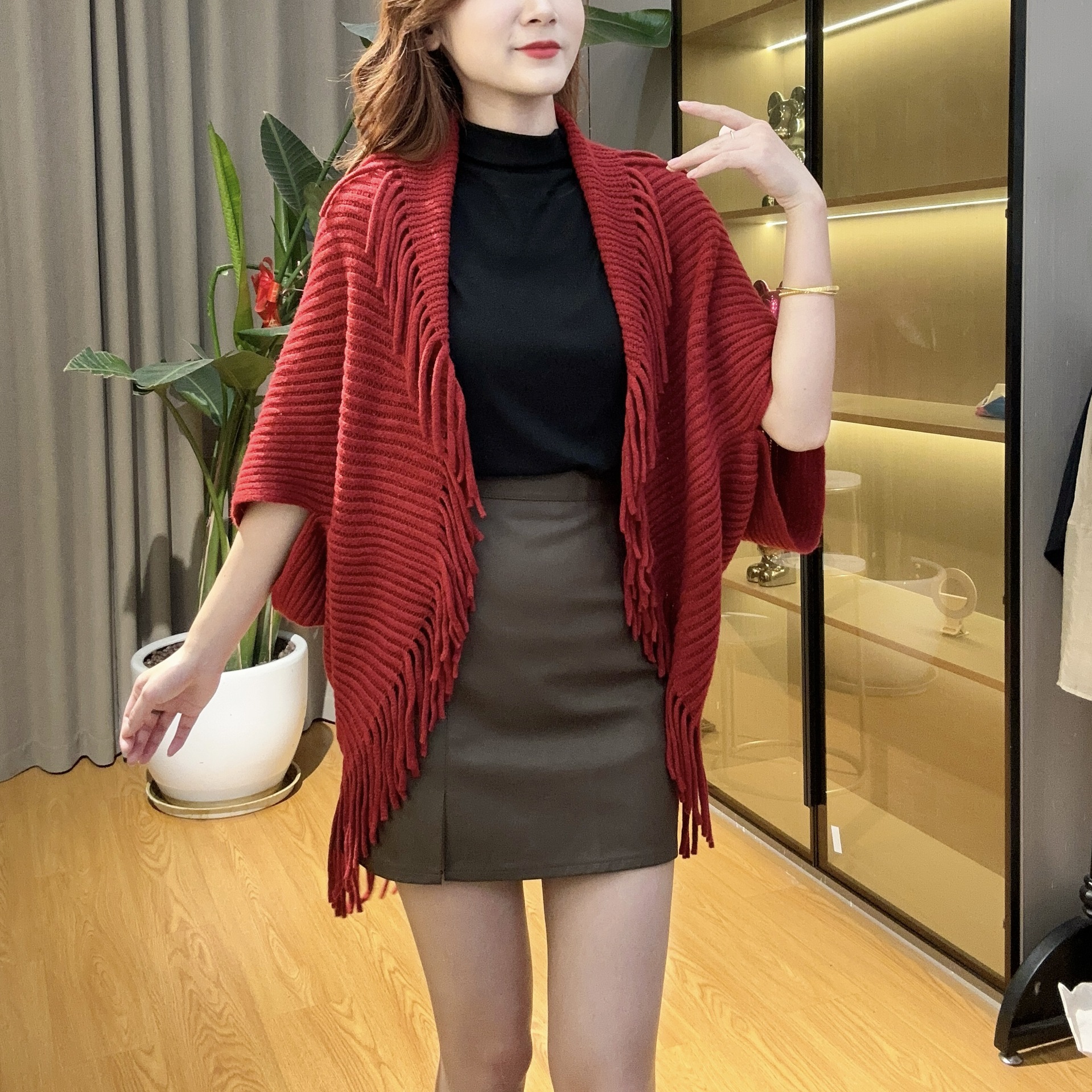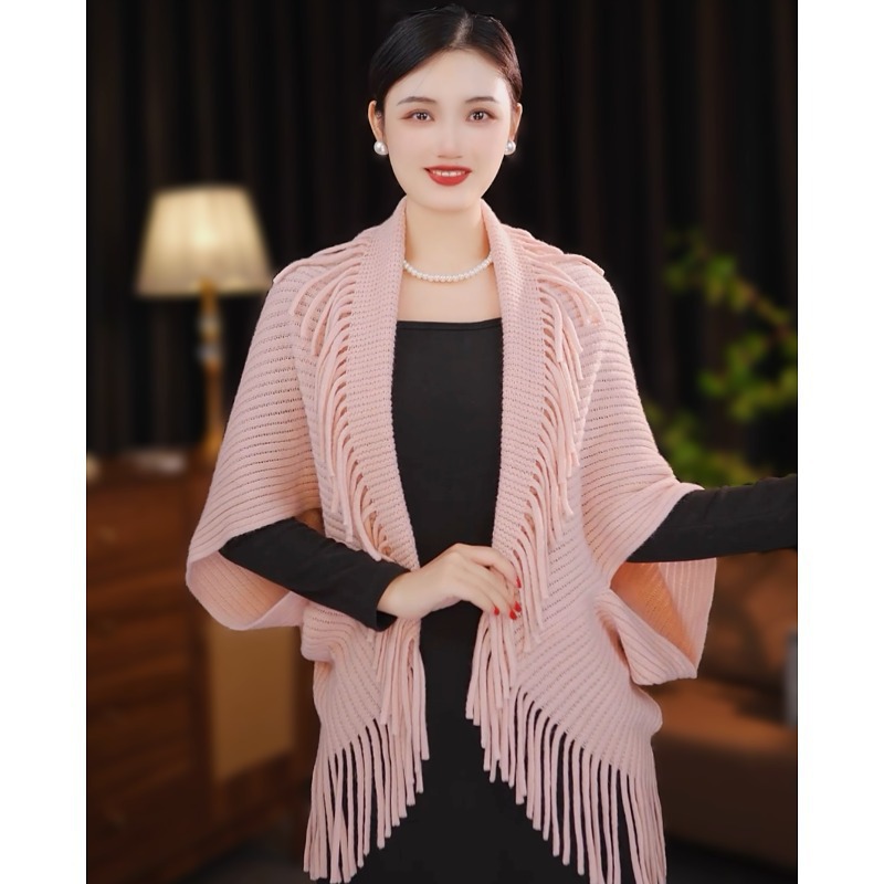 2024秋冬の新型のフリンジニットファッションのストールの純色の百合のゆったりしたカーディガンの外にストライプのフリンジモデルを合わせます。
