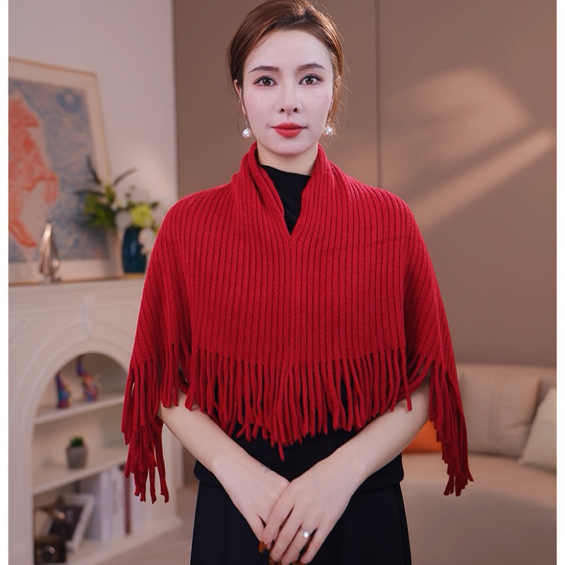 【フリンジニットストール】ファッションは純色の保温秋冬ストールを組み合わせています。
