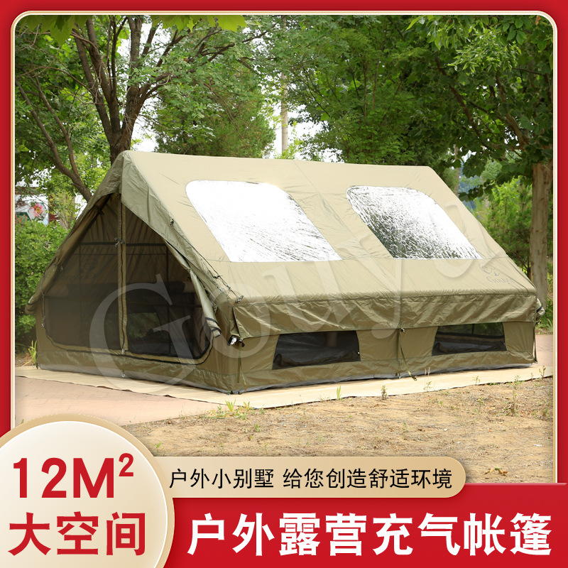 12フラットインフレータブルテント屋外キャンプ一晩防雨厚いキャンプ野外小屋日焼け止めピクニック野外