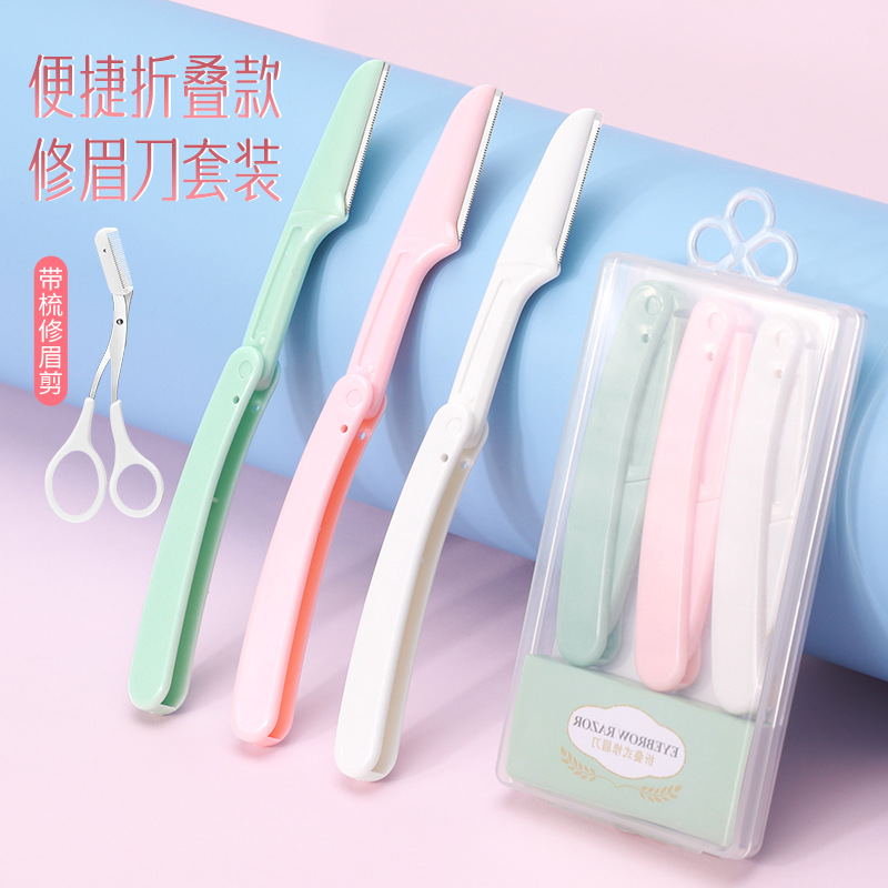 在庫あり、代発送可能 眉毛カミソリセット 直柄眉毛剃り 美容ツールセット 初心者向け安全型眉毛カミソリ