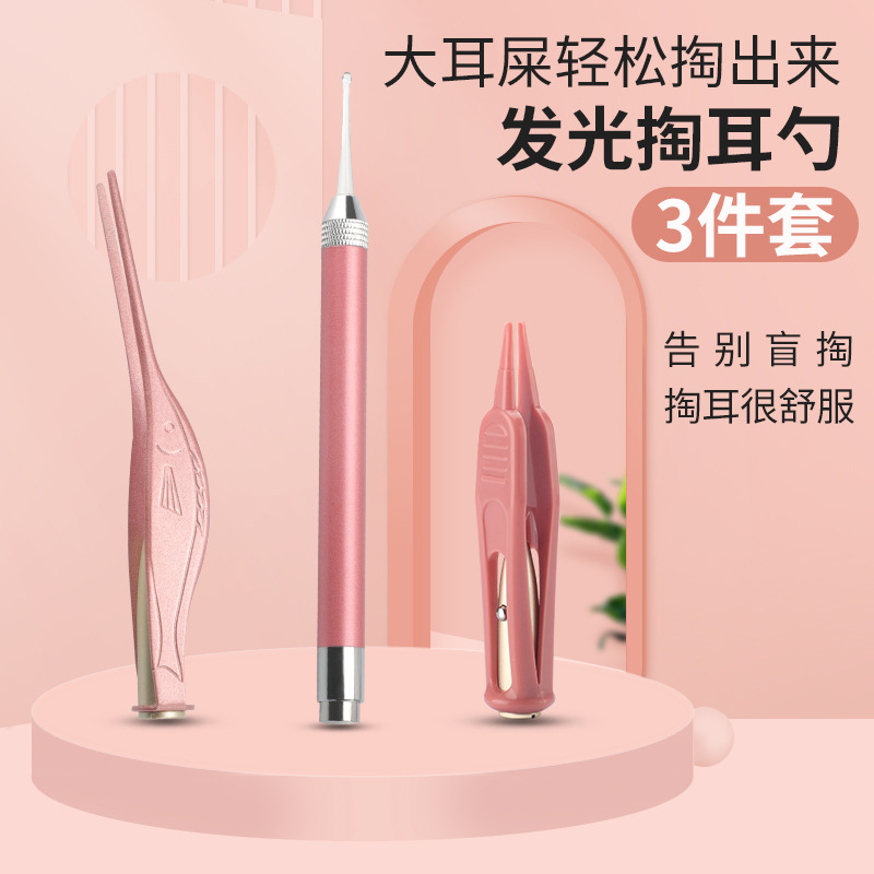 卸売り充電発光耳スプーン赤ちゃんが耳を掘って鼻の耳の糞ピンセットを採取する子供用ランプ付きツールセットメーカー