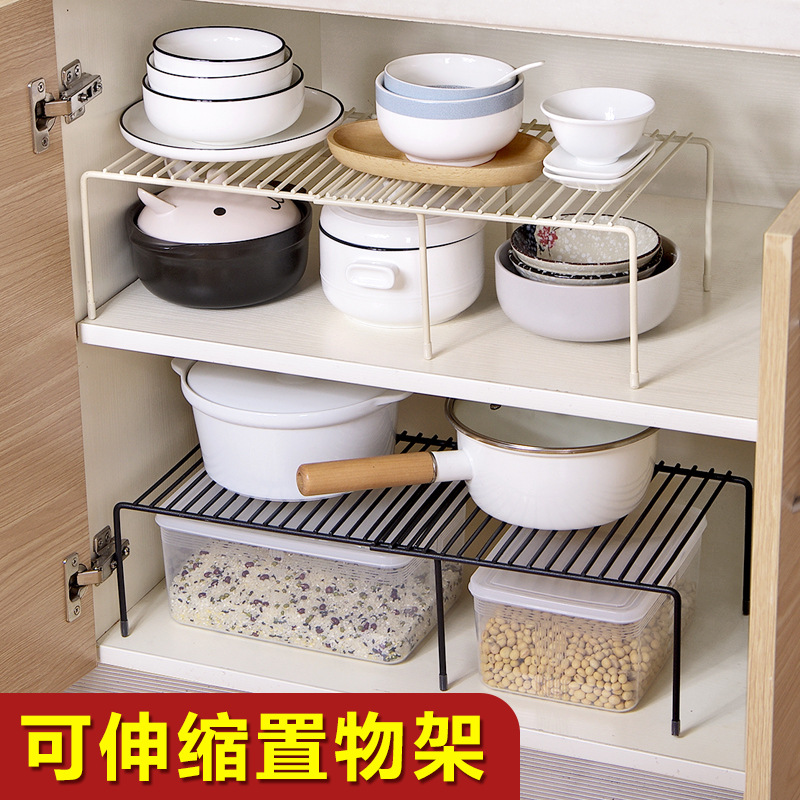 台所の伸縮物棚の下の水槽の食器棚の食器棚の炒め物鍋の調理器具の棚の調味料の瓶は整理して凌之を収めます。