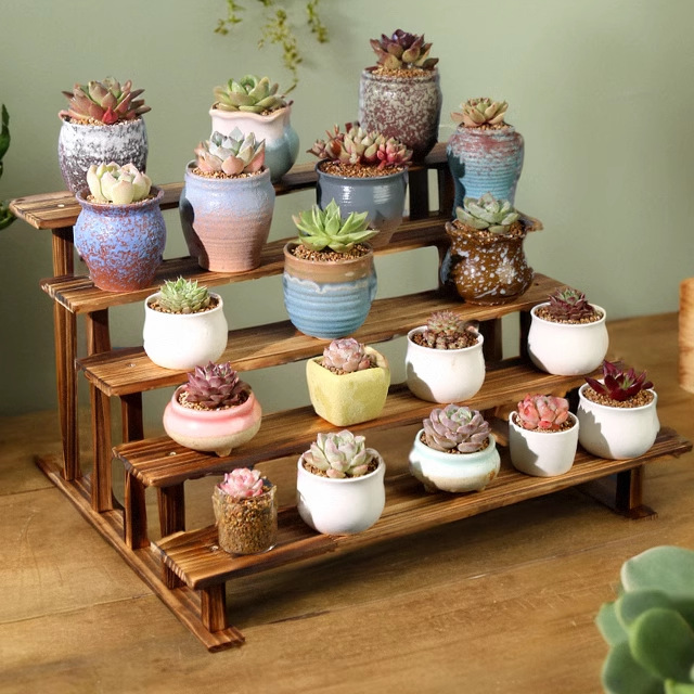 実木展示棚バルコニー階段型多肉展示棚緑植花棚収納室内デスクトップレトロ多層