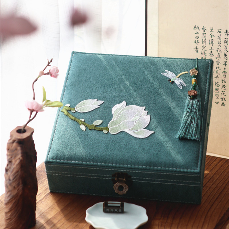 ユートピアのベルベットのアクセサリーケース古風中国式刺繍シンプルな手作りケース収納ケースジュエリーケース