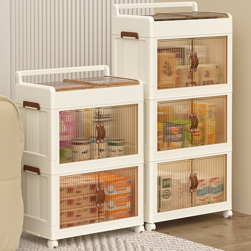 ワゴン車置物棚リビング収納キャビネット雑品整理棚折りたたみ式家庭用移動式ドア開き式収納唐延