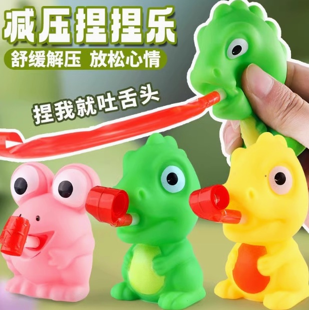 カエルの舌を吐く恐竜のつまみの音の同じタイプの音の贈り物のおもちゃの露店の解凍の人形の卸売りの越境