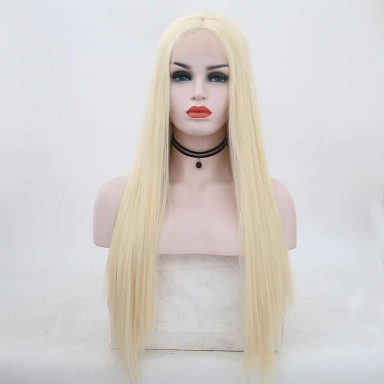クロスボーダーウィッグ ヘア ヨーロッパとアメリカのウィッグ 女性用 ロングストレートヘア ミドル分けレースフロントウィッグ ブロンド化学繊維ヘッドギアウィッグ
