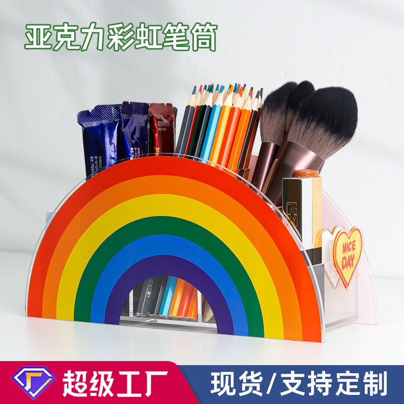 虹の筆立てのデスクトップのアイデアネットの赤い漫画のかわいい子供の文房具の多機能の収納箱のアクリルの筆の桶