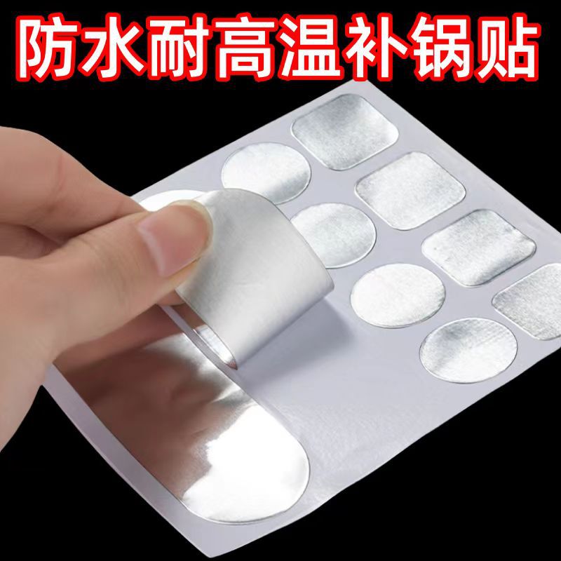 補鍋はアルミ箔を貼って、鍋の底のステンレスの穴を補います。