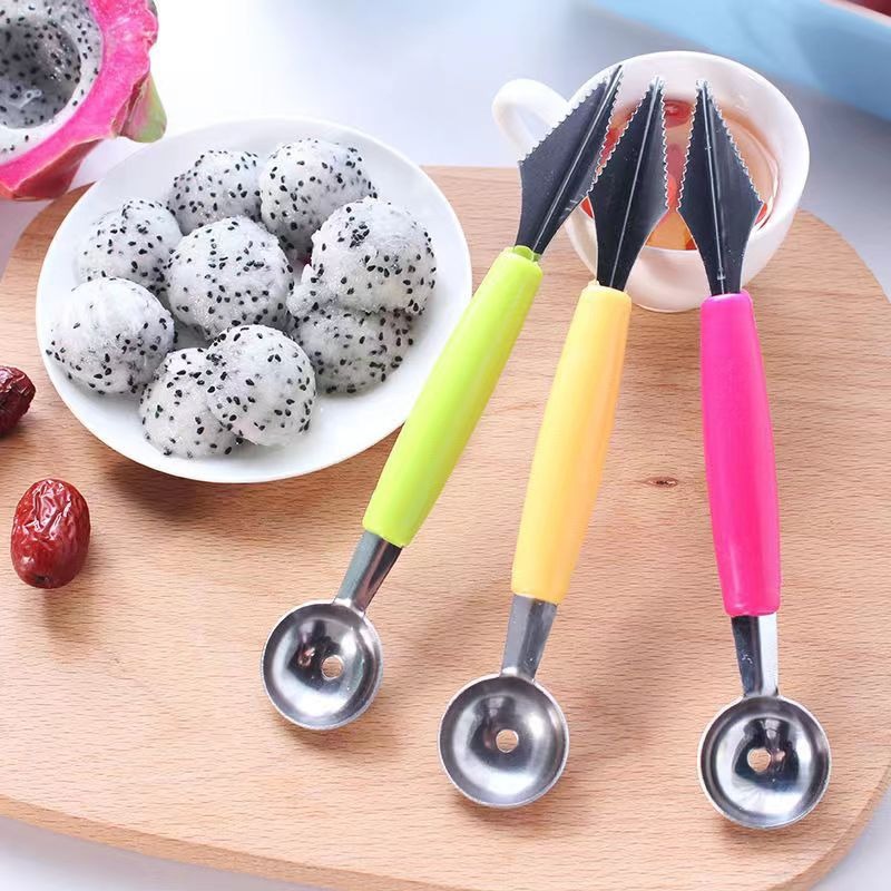 スイカ掘削ボールスプーン家庭用花スタイルの果物切り器ダブルヘッドステンレス果物盛り合わせスプーン波紋彫刻刀スプーン