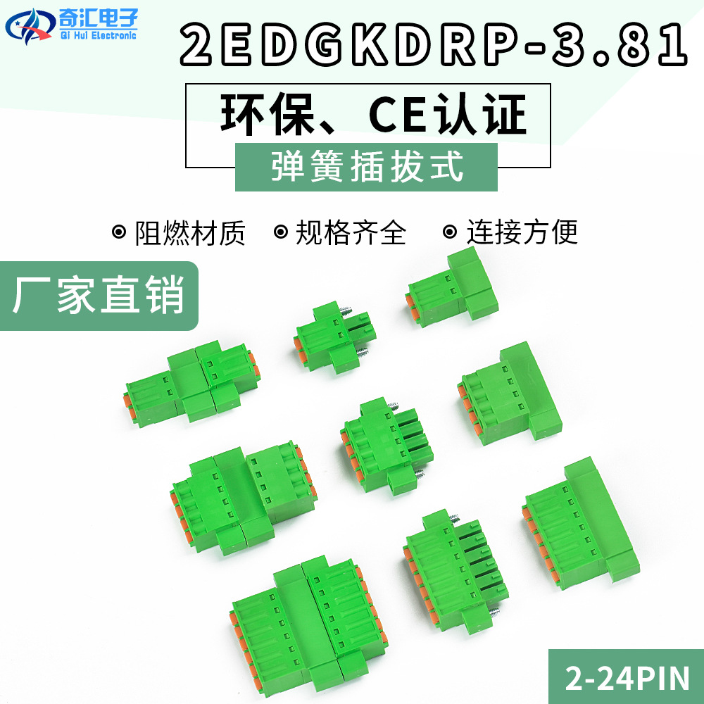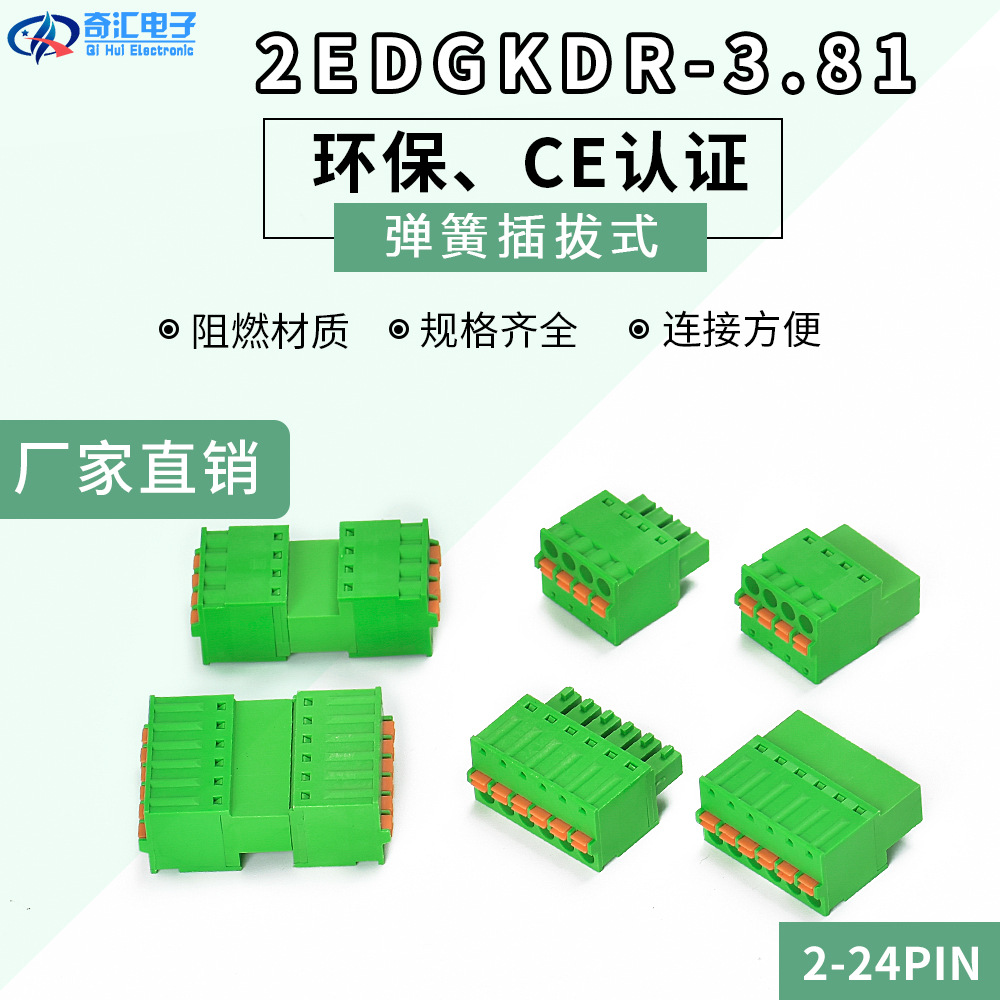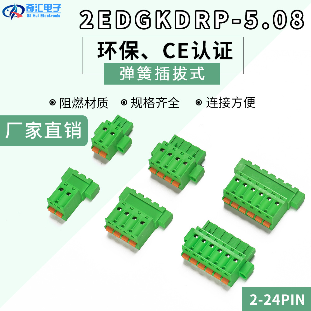 スプリング式配線プラグ2edgkd-5.08ネジなし光プラグ2-24pinグリーン端子プラグ