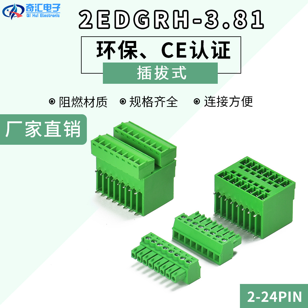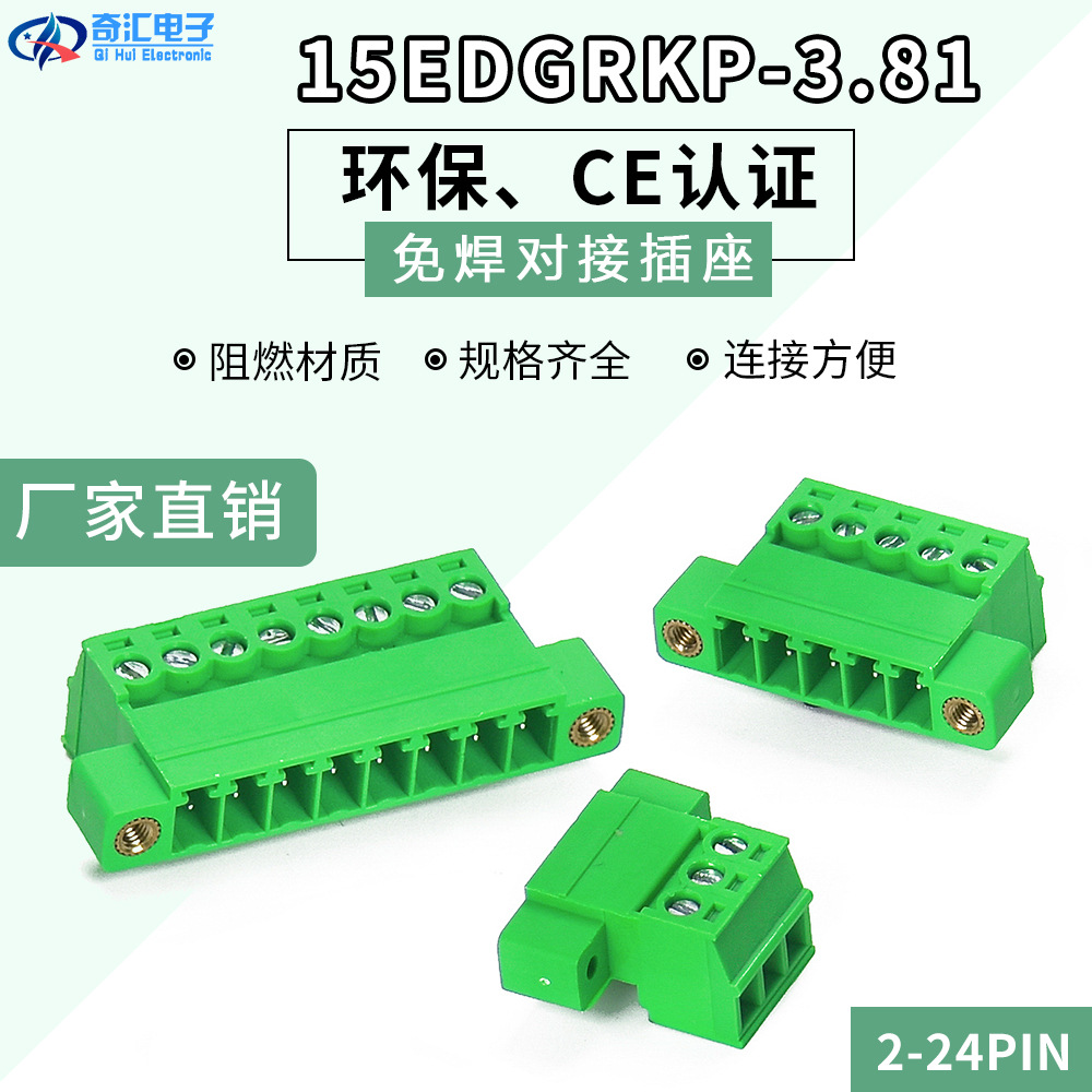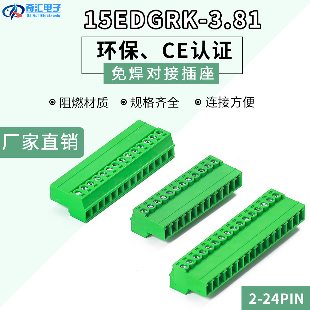 プラグイン端子15edgrk-3.81 2p-24p光針座シングルヘッド小ピッチグリーン端子