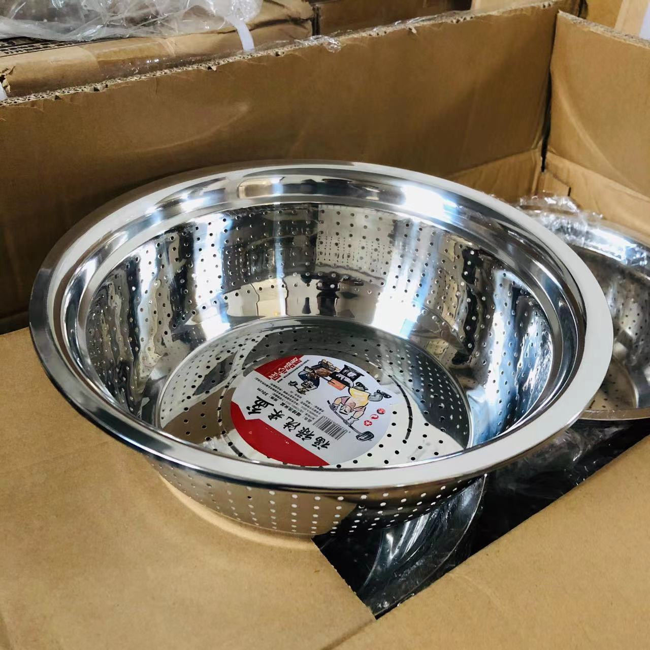 32特厚ステンレス米篩ヨーロッパ式洗米盆無磁気足尺米篩10元店デパート卸売り