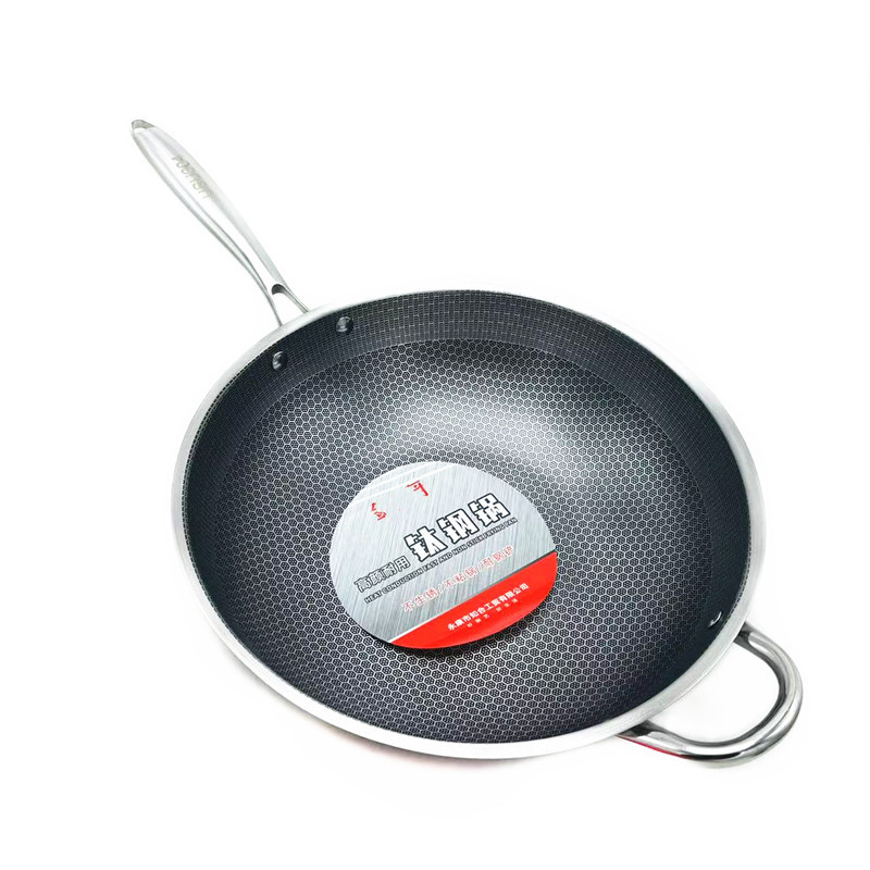 34蜂窩ノンスティックステンレス鋼フライパン、耳付きステンレス鋼フライパン、家庭用キッチン調理鍋卸売