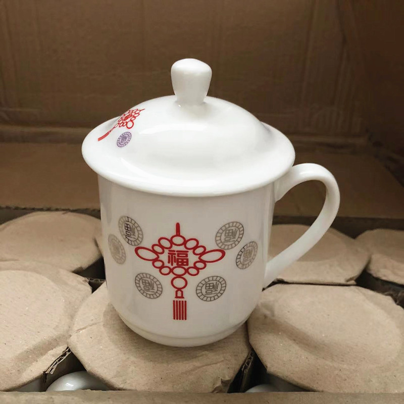 陶磁器の蓋の杯の中国式は蓋の杯の事務室の会議室のコップの日用品の小さいデパートの商品の供給源の卸売りを持ちます。