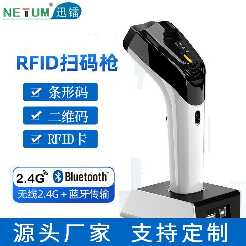 Rfidリーダー無線バーコードスキャンガンuhf超高周波電子ラベルカードリーダー高周波nfcスキャナ