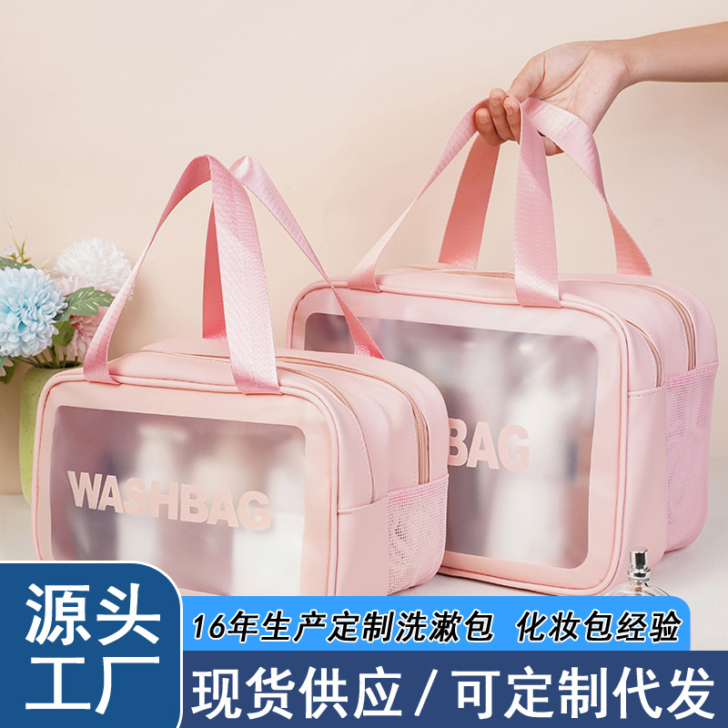 新型透明化粧バッグ大容量携帯洗面バッグ旅行防水puフロストスキンケア収納袋
