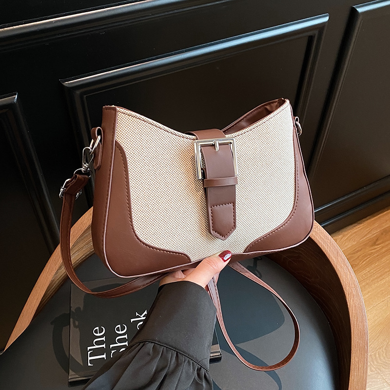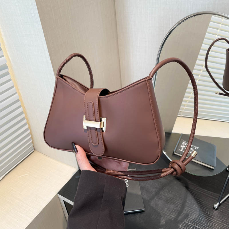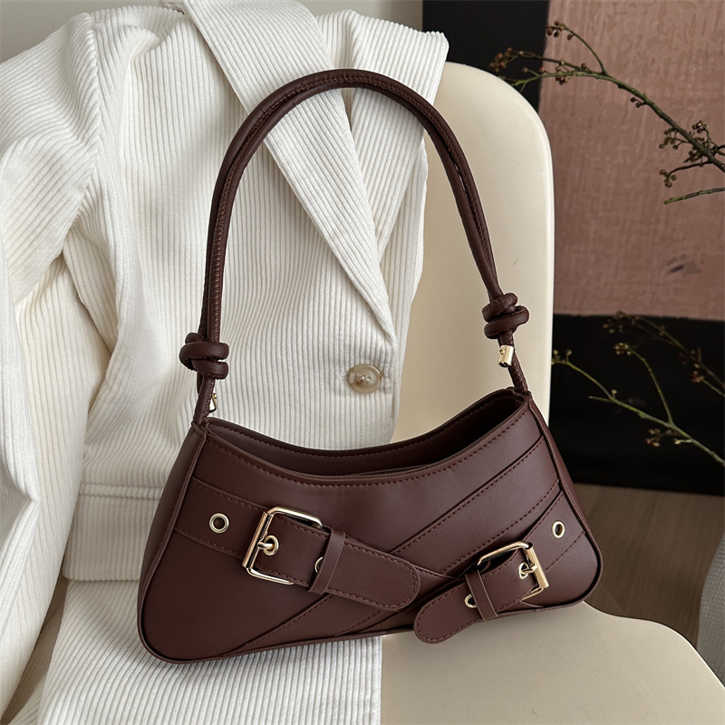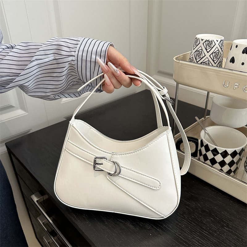 個性的なベルト飾り脇下バッグ女性2025新作春大容量通勤純色脇下ショルダーバッグ