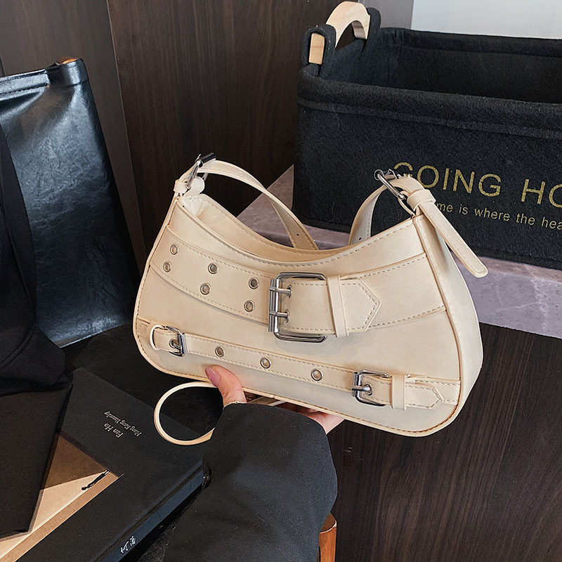 シンプルリベットファッション腋の下バッグ女性2025春の新ファッション洋風小衆デザインシングルショルダーバッグ
