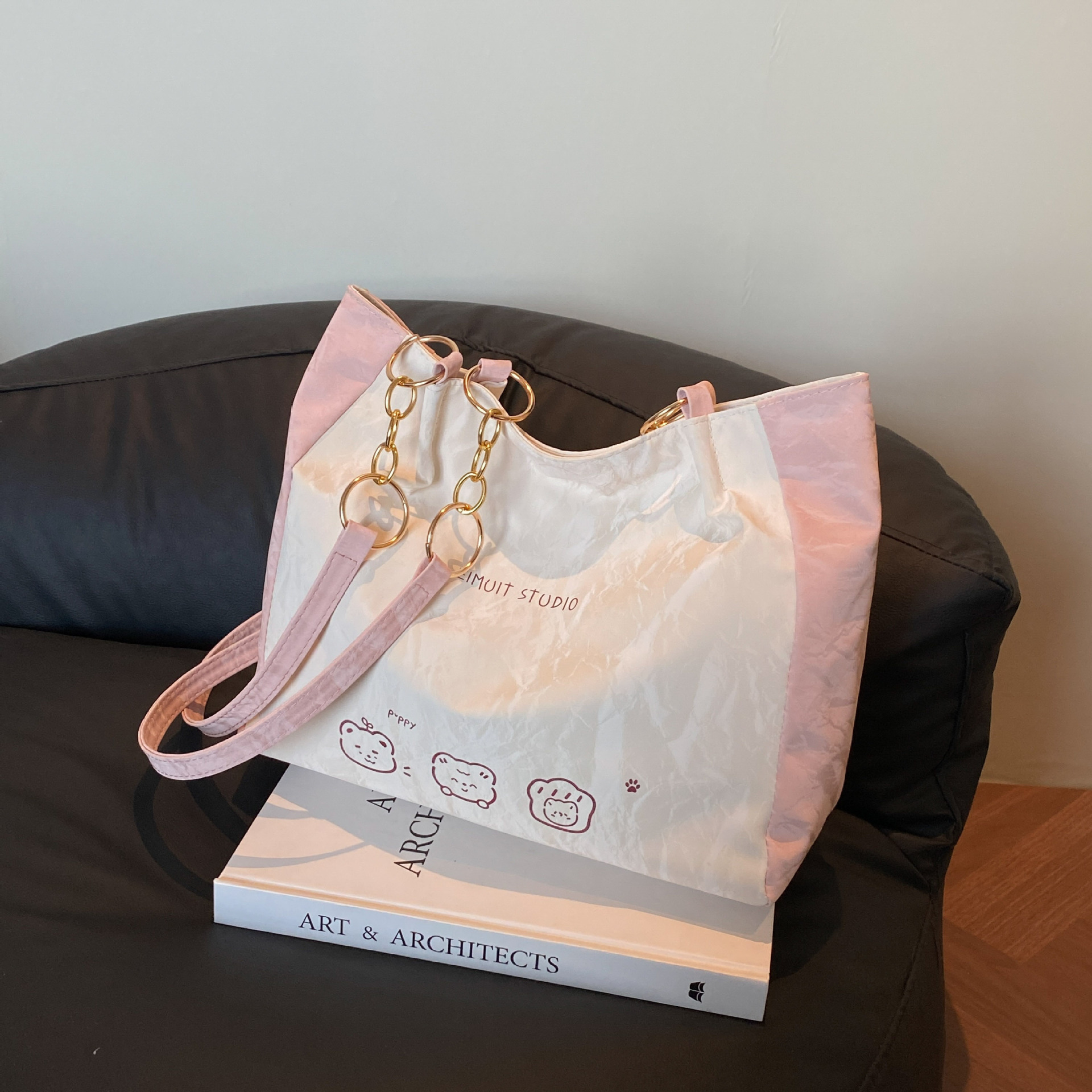 洋気通勤学生シングルショルダーバッグ女性2025新型女性バッグ小衆デザインカジュアルファッション個性トートバッグ