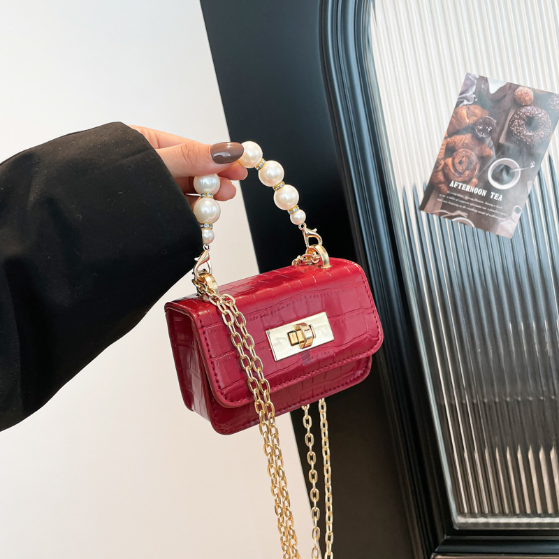 ミニ石紋真珠ハンドバッグ女性2025春の新しい質感流行ファッションチェーンショルダーバッグ