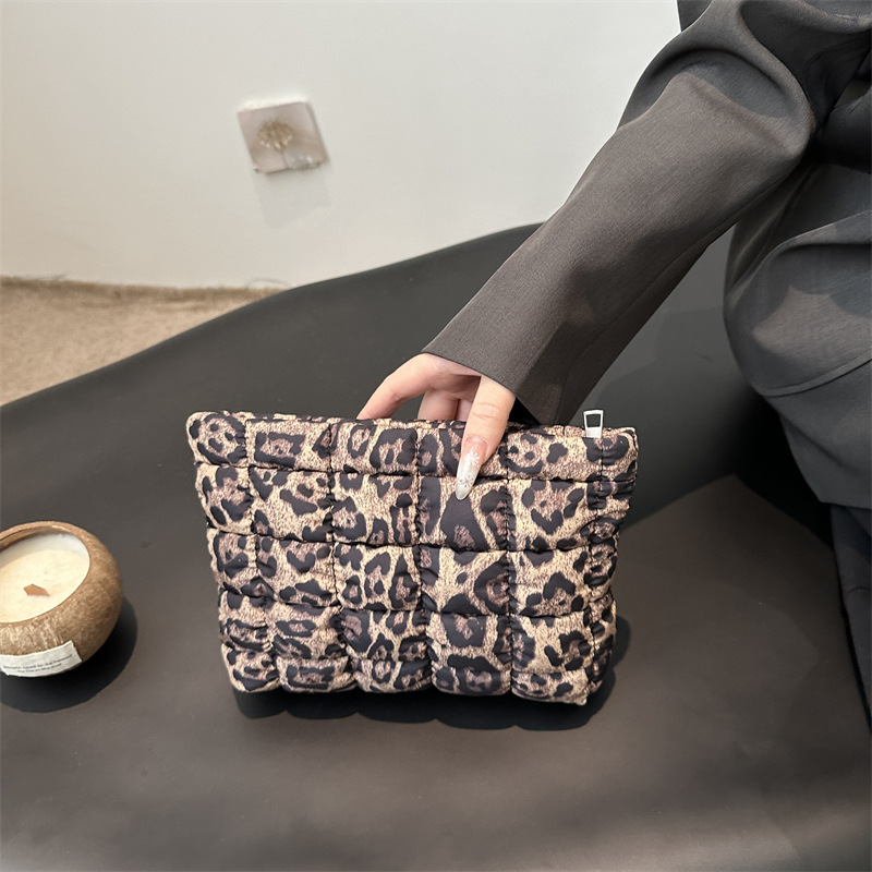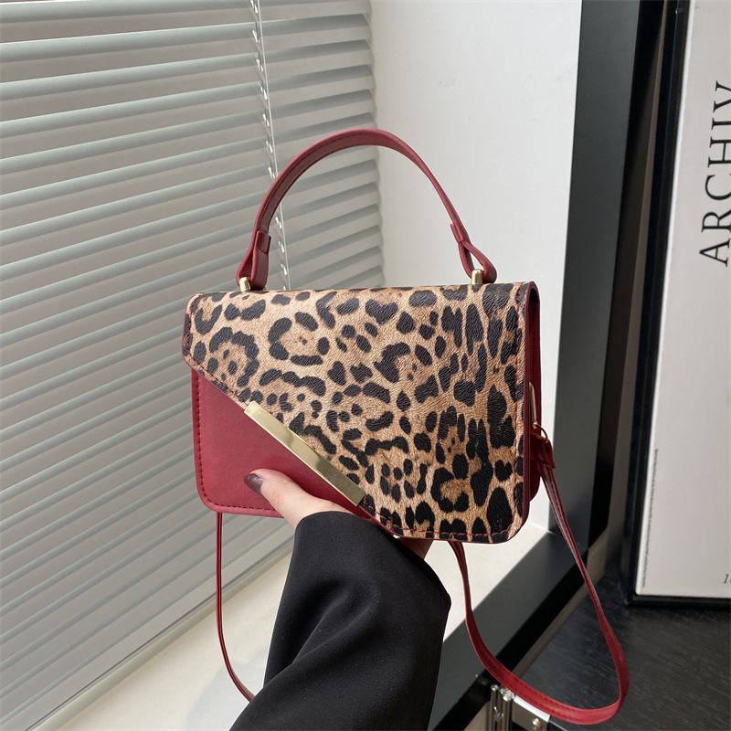ヒョウ柄のハンドバッグ女性2025春の新しいファッションヒョウ柄のシンプルなハンドバッグ刺繍の格子封筒バッグ
