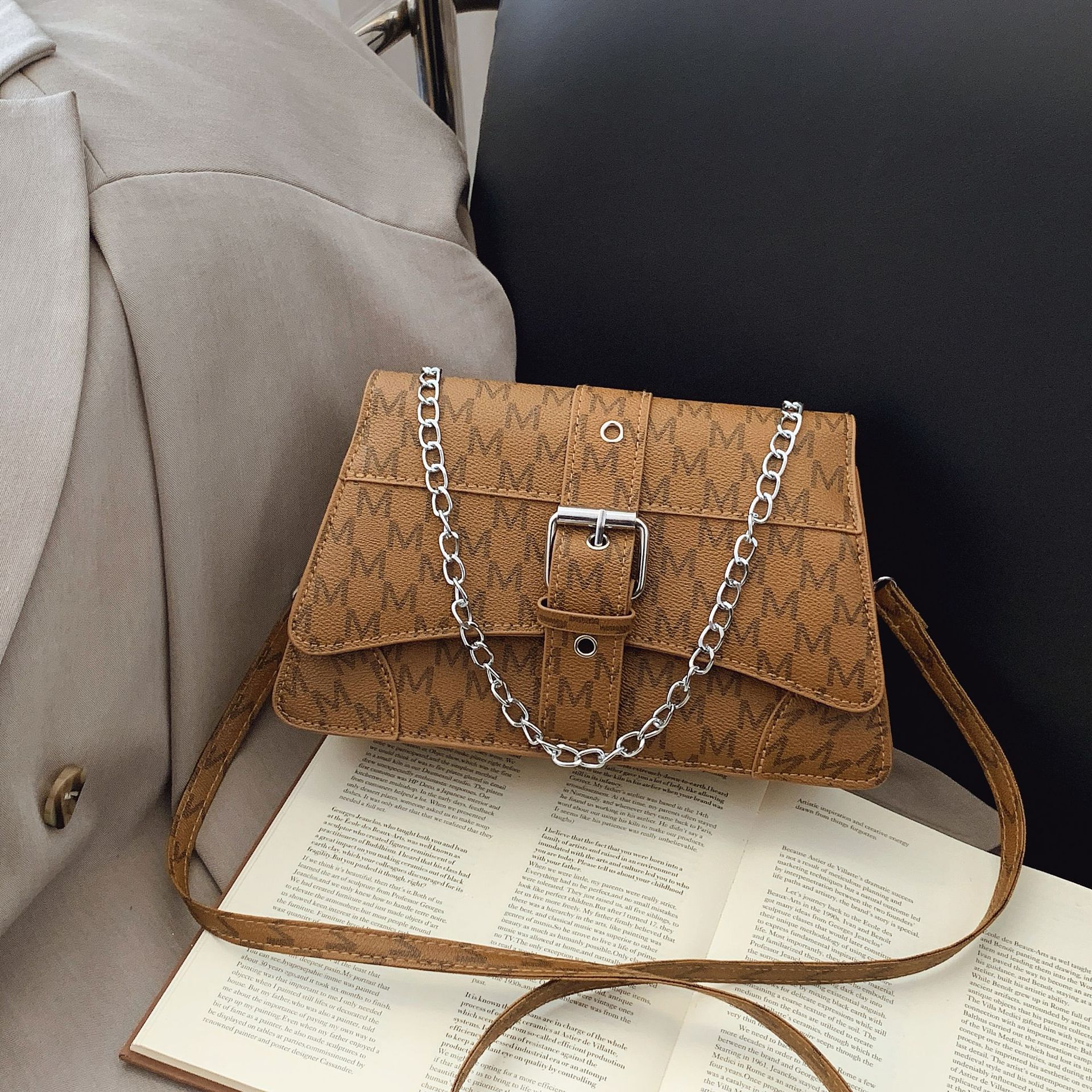 プリントファッションの脇の下のカバンの女性2025新型の春の質感の通勤流行の洋風チェーンのショルダーバッグ