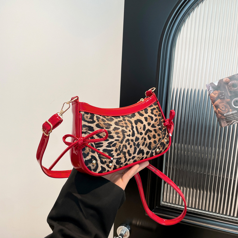2025新型豹紋衝突色ファッションレトロ韓国系豹紋ファッション気質女性バッグシングル肩斜め脇下バッグ