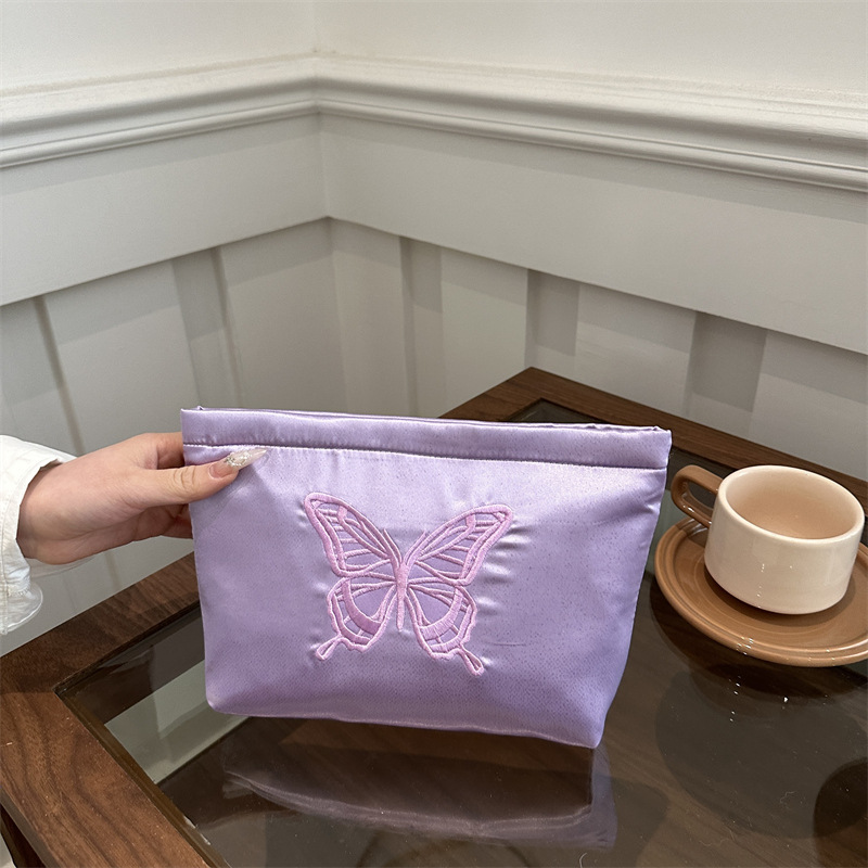 ファッション蝶刺繍収納バッグ女性2025春の新型流行百合シンプルカジュアル刺繍ハンドバッグ
