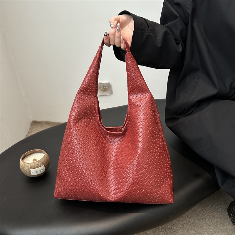 カジュアルレトロ大容量トートバッグレディース2025ファッション織り通勤バッグシンプルレトロシングル肩脇下バッグ