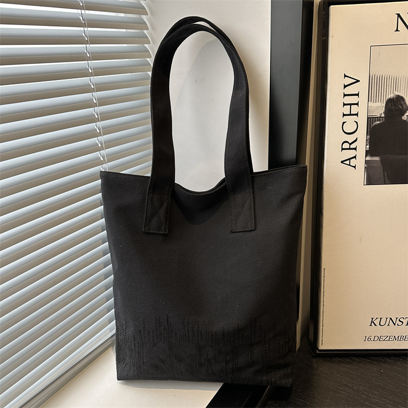 韓国版刺繍ファッションカジュアルキャンバスバッグ女性2025新型学生手提げ本袋通勤シングルショルダーバッグ