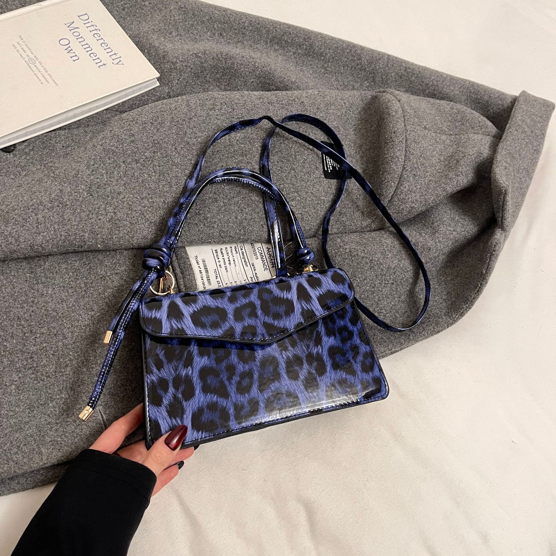 欧米の鏡面の個性の豹の紋様のシンプルな気質の小さい方は2025新型の小さい大衆のカジュアルな洋風のシングル肩の斜めのショルダーバッグを包みます