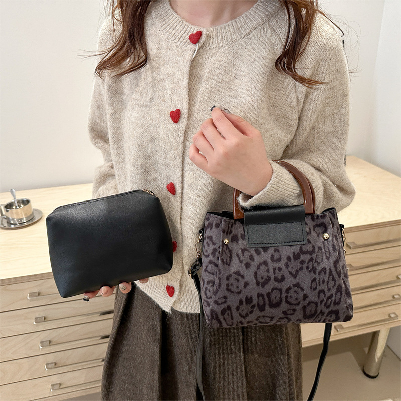 韓国版ファッションレトロ豹柄ハンドバッグ2025春新作女性衝突色片肩斜めショルダーバッグ気質小方バッグ