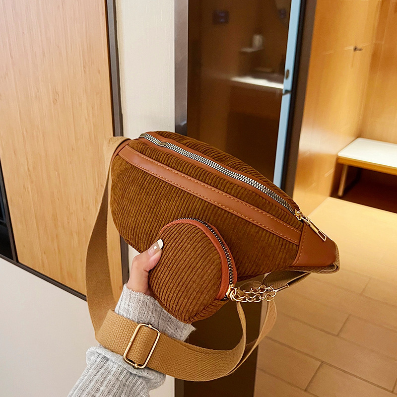 コーデュロイ大容量バッグ女性用女性バッグ2024新作ファッション胸バッグ女性カジュアルウエストバッグシングル肩斜めがけバッグ