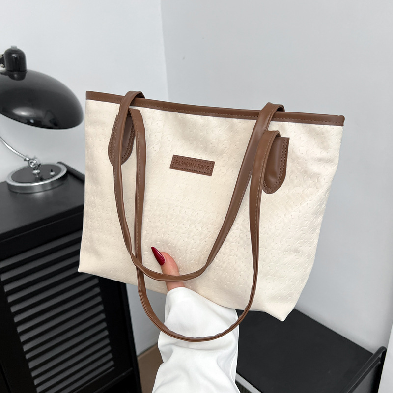 2024秋冬新作綿服女性バッグ大容量手提げ亮面菱格刺繍ラインワンショルダー大きいカバン洋気トートバッグ
