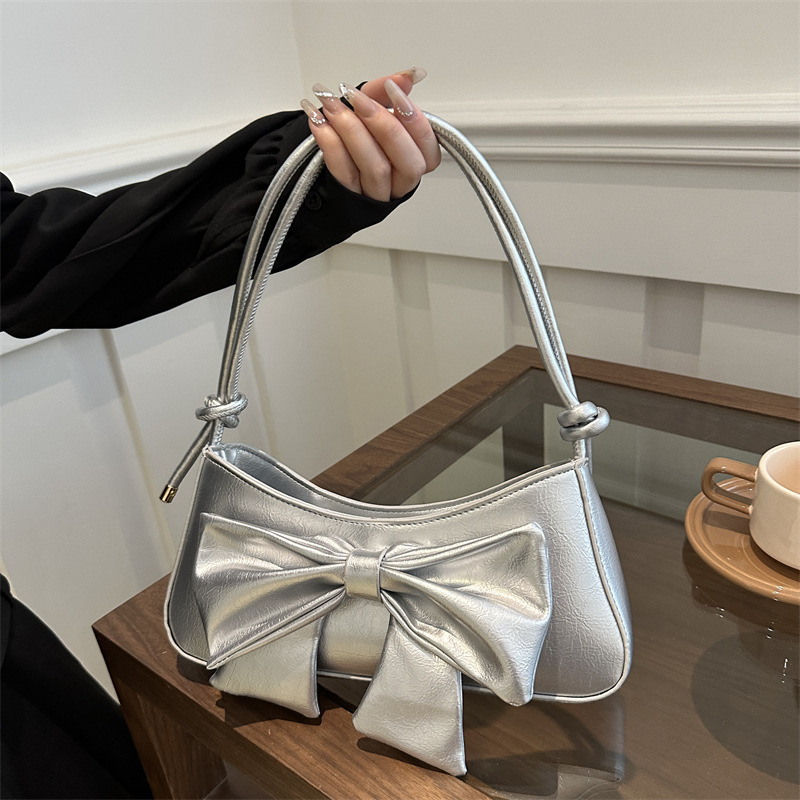 個性的なファッションの蝶結びのわきの下の包みの女性の2024夏の新型の洋風の潮流の純色の片肩のハンドバッグ