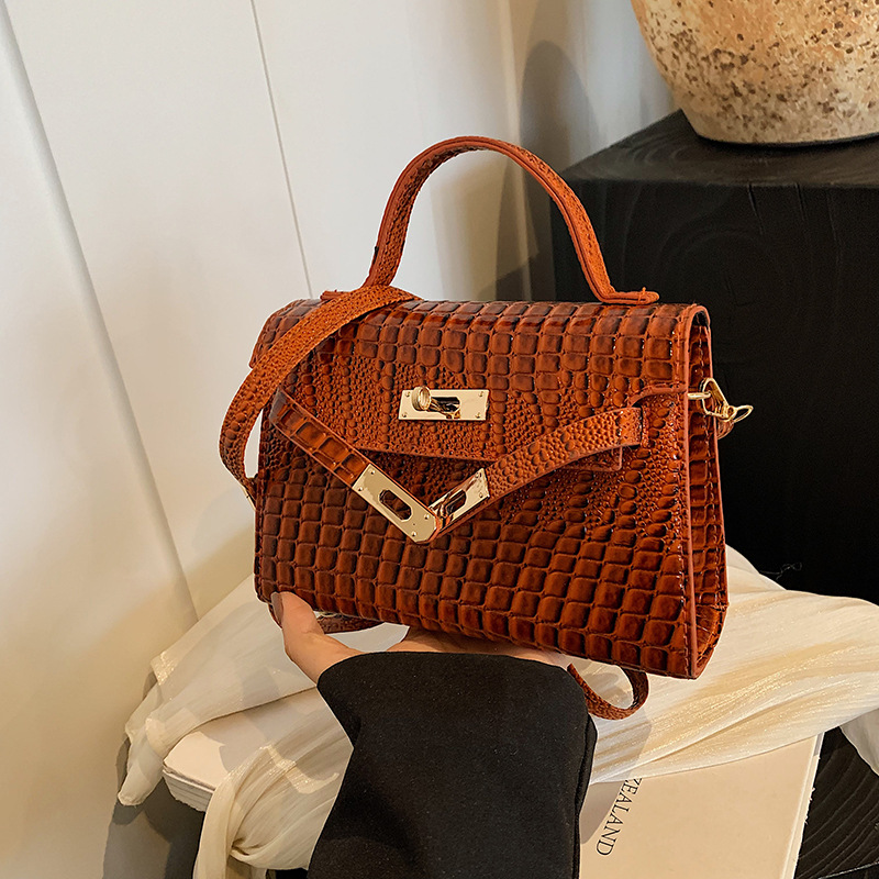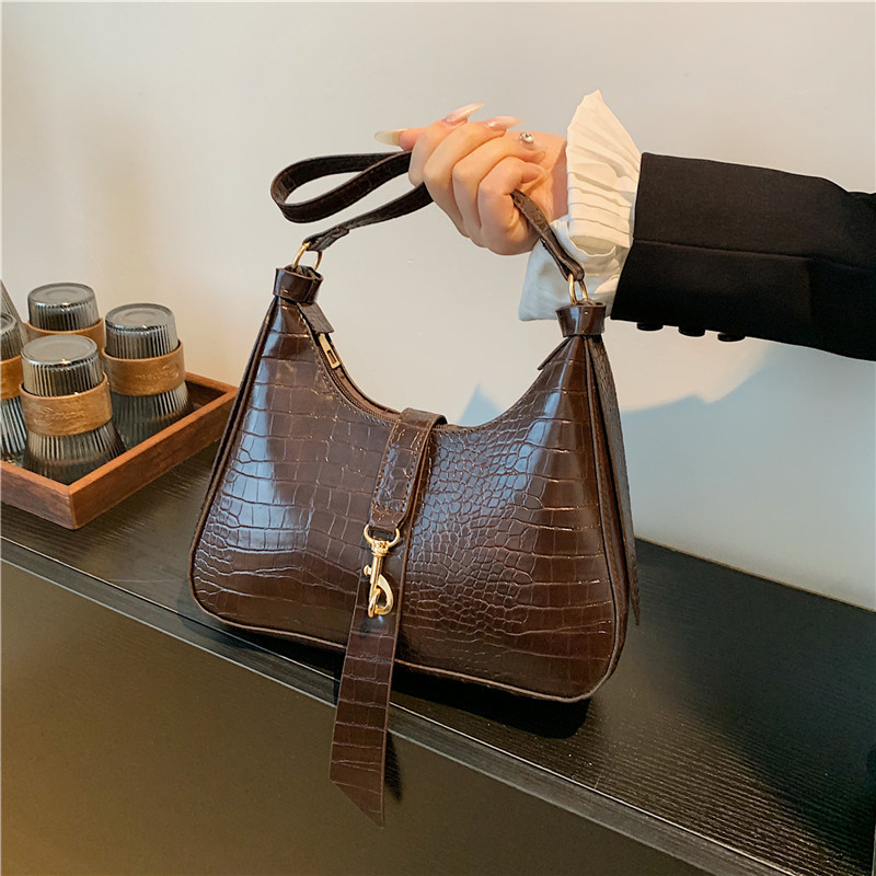 レトロなワニの紋様のカジュアルな包みの女性の2024春の夏の新型の韓国版の純色の流行のショルダーバッグのファッションのわきの下の包み