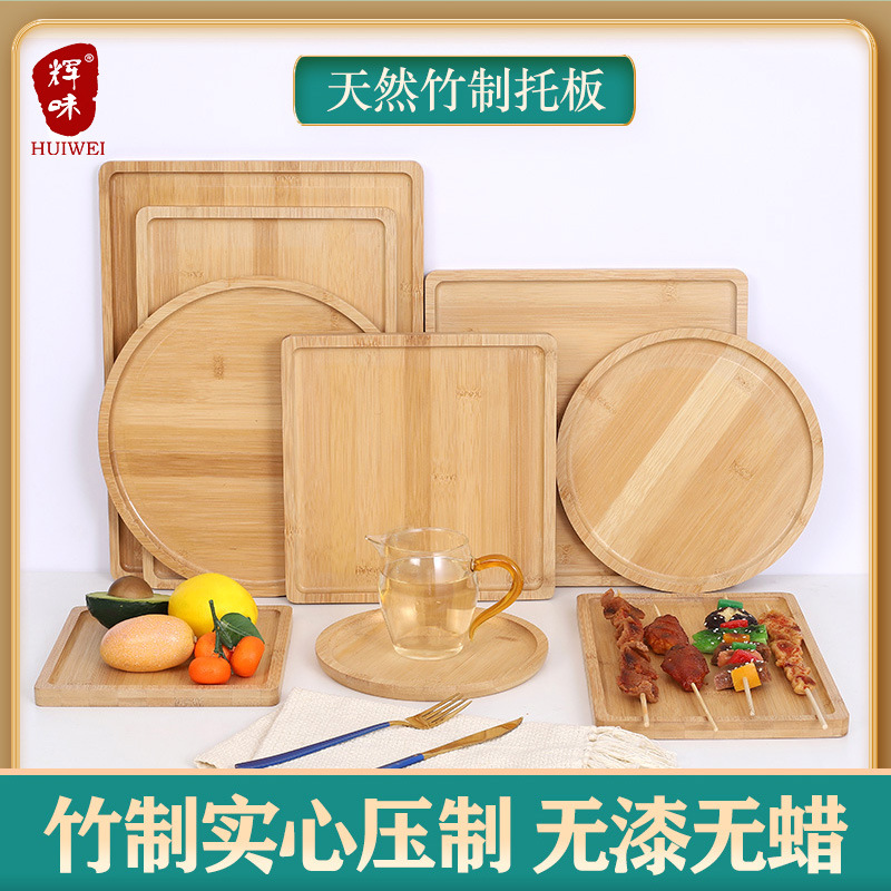 光沢竹パレット長方形円形竹パレット家庭用木製皿竹製ティーカップ皿トレートレートレー