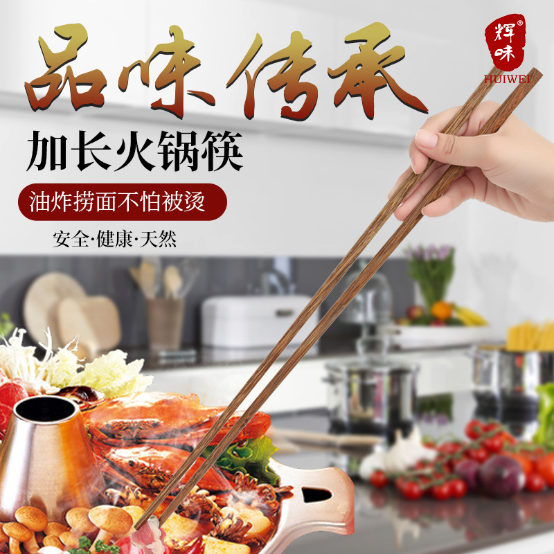 原木箸32cm42cm延長鍋箸家庭用すくい面揚げ箸鶏翅木実木無漆箸卸売り