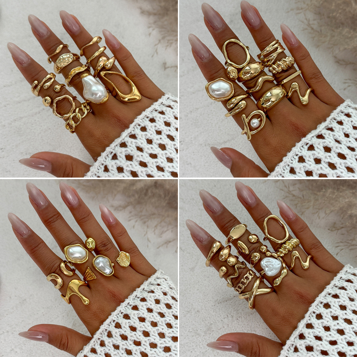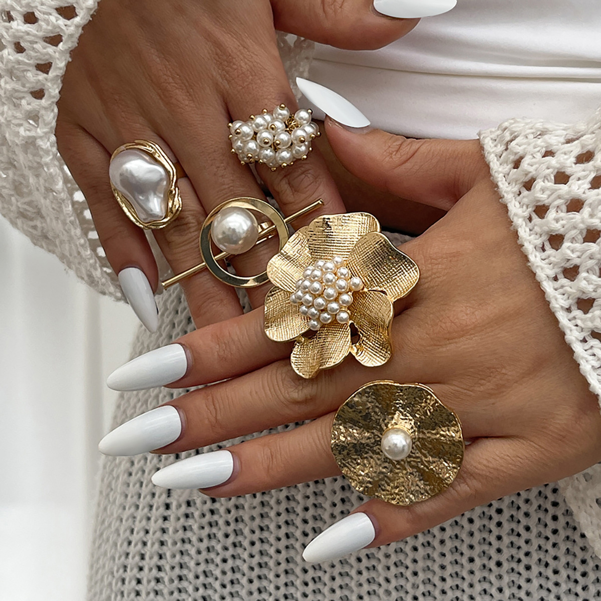 休暇風ボヘミアン開口指輪insハスの葉関節リングシンプル欧米バロック模造真珠Rings