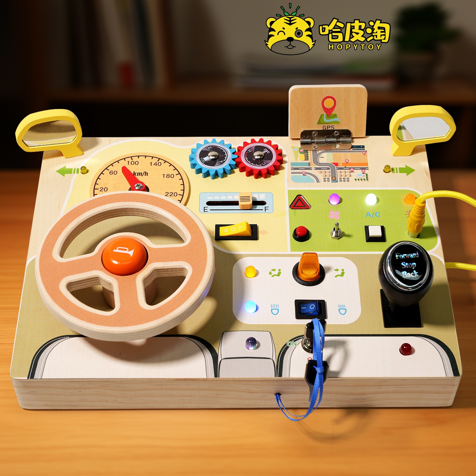 新型児童早教木製玩具ハンドルledランプ木製多忙板ソケットスイッチ玩具が手を出す