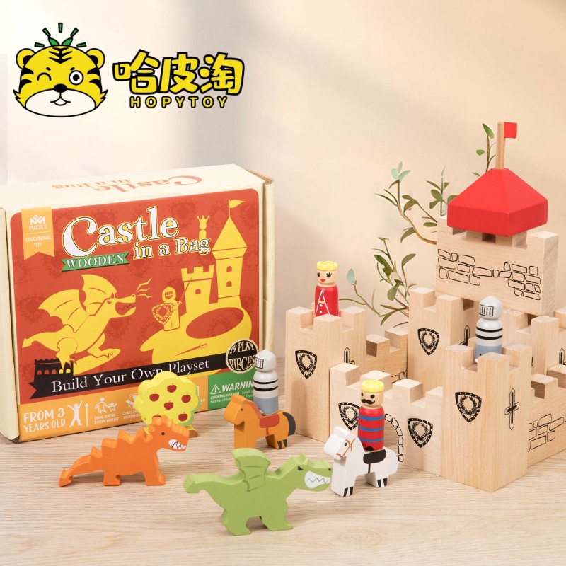 クロスボーダーの子供の早教の益智のアイデアは木のおもちゃの中国の城の木製の家の童話の積み木を並べます。