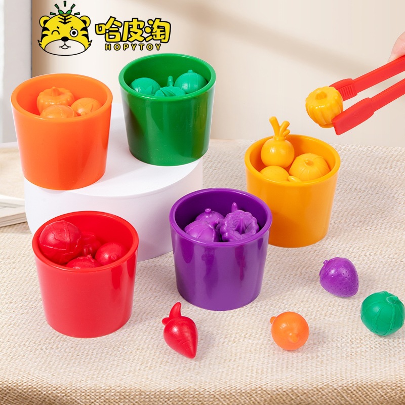 子供の趣味の果物の店はビーズを挟んで早く色を教えて分類して精密な動作の益知能のおもちゃを鍛えます。