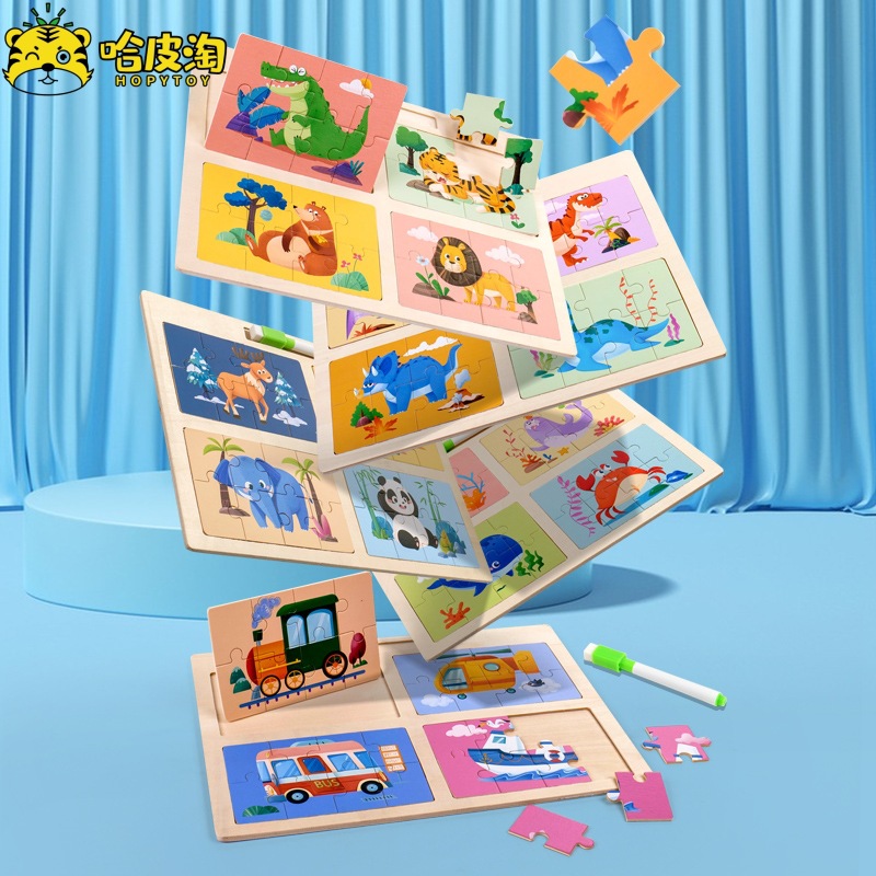 両面の動物の親子のパズルは子供の木の益智をつづり合わせます。