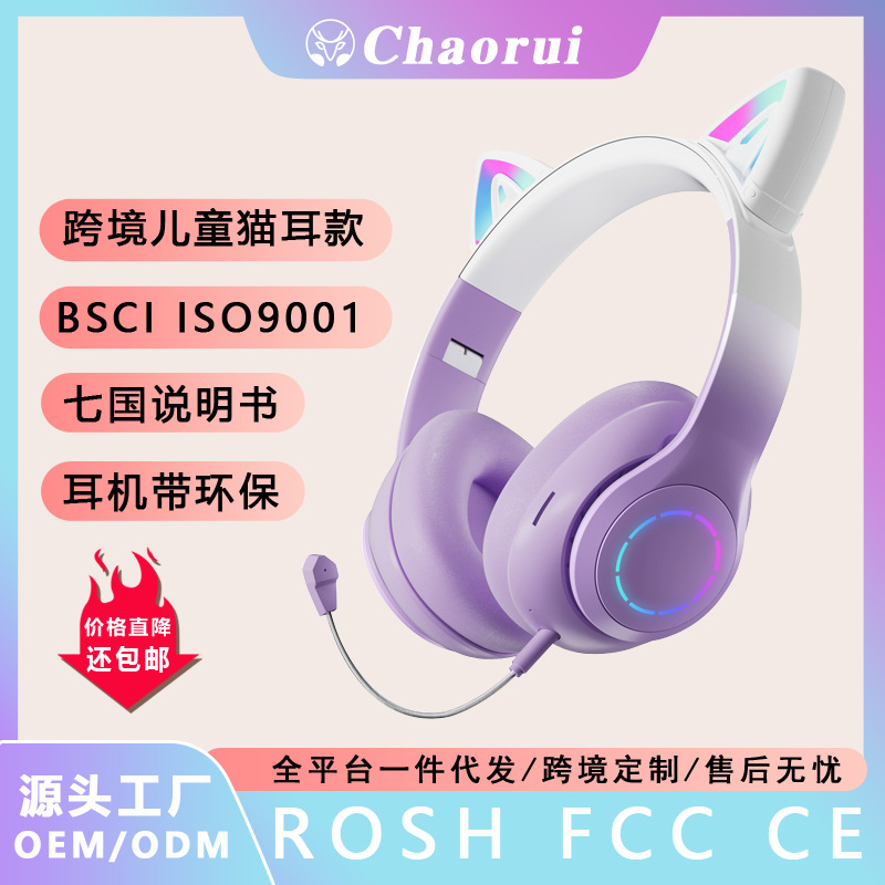 新型stn28t宇宙室猫耳bluetoothイヤホン5.3ヘッドセット萌え系かわいい発光イヤホンクロスボーダー