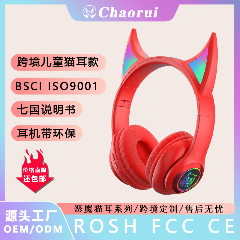 新型国潮マカロン悪魔猫耳bluetoothイヤホンヘッドセット無線運動学生電競イヤホンヘッドセット