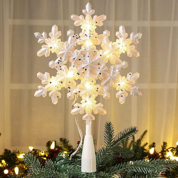 クロスボーダー新しいクリスマスツリートップスタークリスタルスノーフレークツリーLEDライト付きクリスマスツリートップスター装飾品