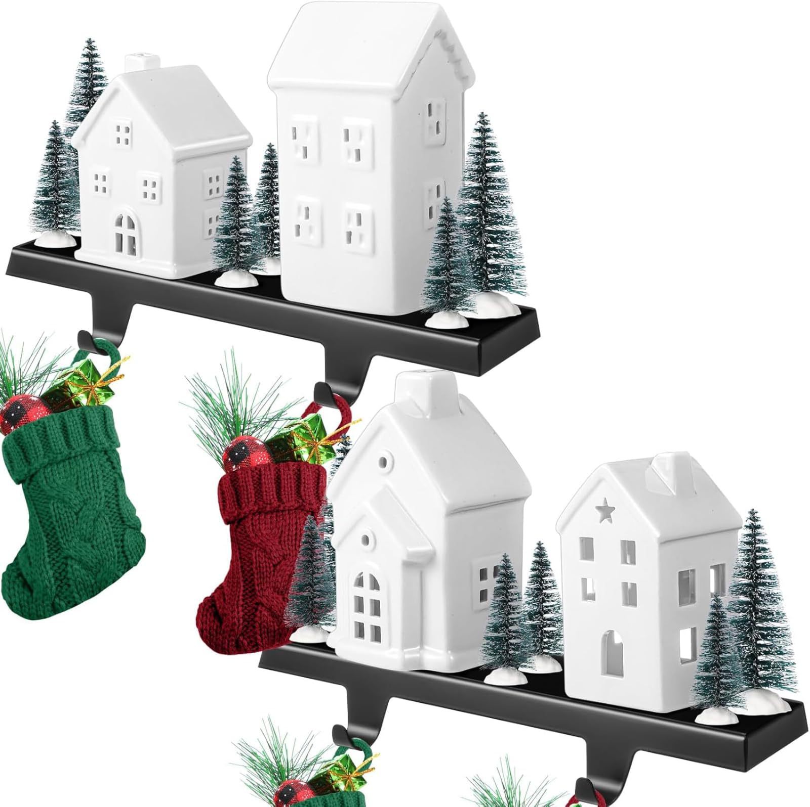 クリスマス人気の小さな家メタルベースダブルフックホリデーパーティーホーム暖炉ソックスフック装飾品