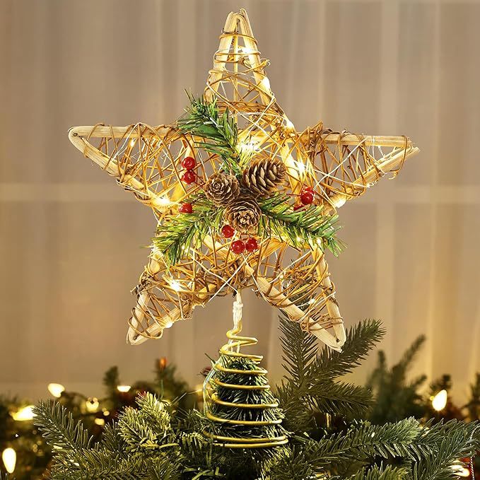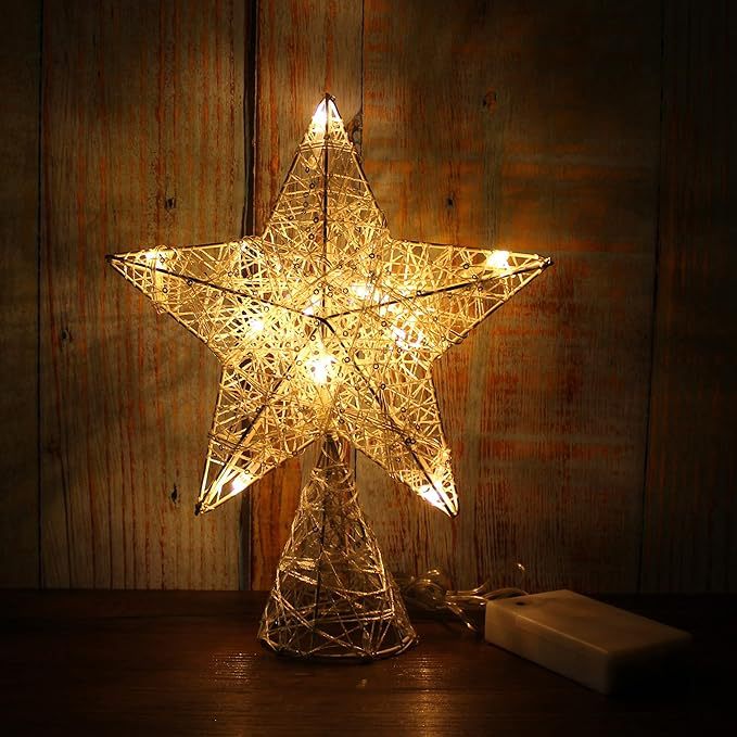 クロスボーダー新製品クリスマスアイアンクリスマスツリートップスターLED暖かい光クリスマスツリーハンギングオーナメント会場装飾