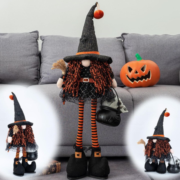 2025 新しいハロウィン装飾黒ローブルドルフとんがり帽子魔女顔のない人形ノーム装飾品会場レイアウト